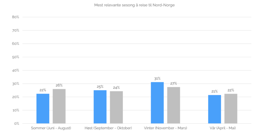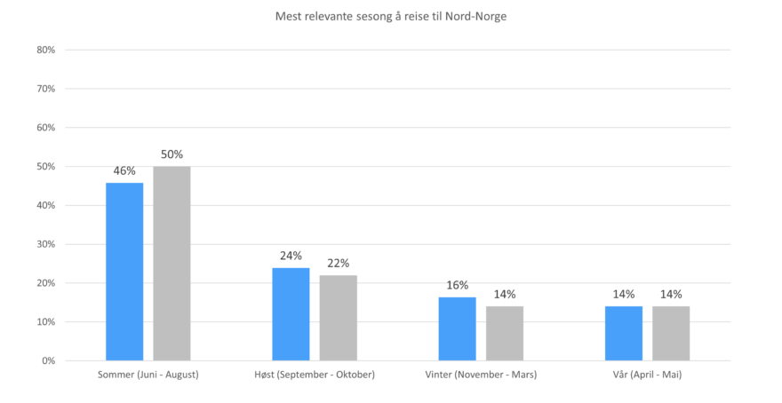 I de europeiske markedene ønsker nesten halvparten å besøke nord på sommeren, signifikant færre enn i de andre målgruppene. Interessen for høst og vinter er imidlertid høyest av alle målgrupper.