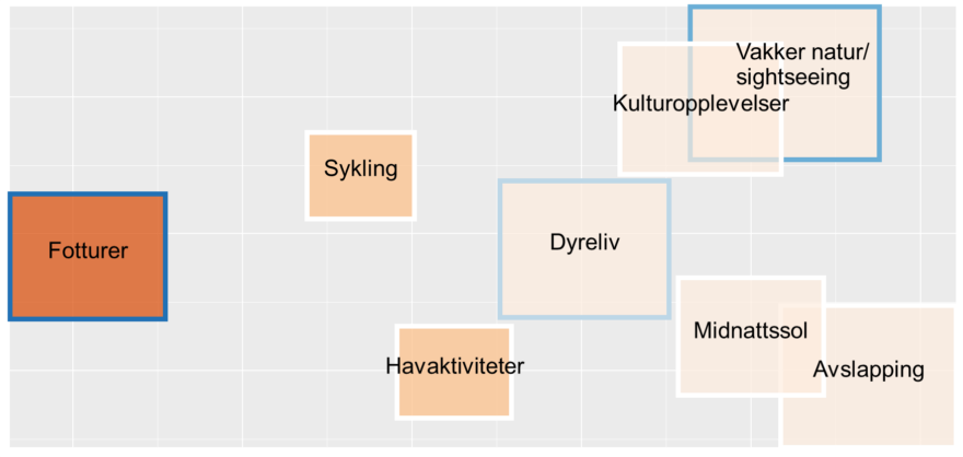 Å oppleve naturfenomener og spektakulær natur er like viktige, og mest interessant for målgruppen Aktive eventyrere som vil besøke Nord-Norge eller Svalbard. De er mer interessert enn de andre målgruppene i vinter og sommeraktiviteter. Det er små forskjell i drivere, men å oppleve naturfenomener er enda litt viktigere for de som vil besøke Nord-Norge enn Svalbard.
