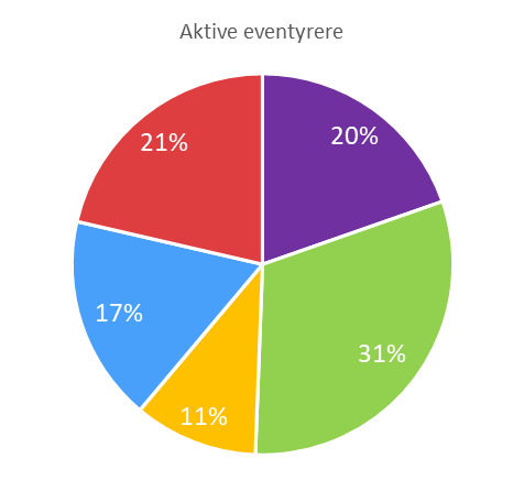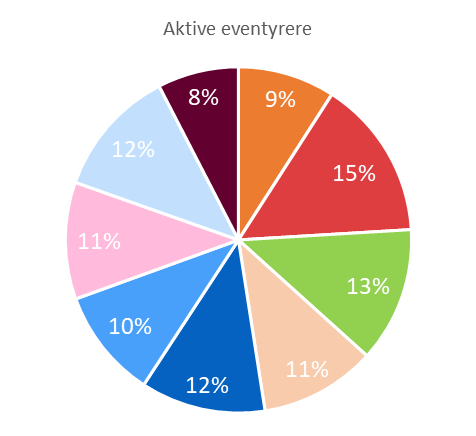 Aktive eventyrere utgjør 7 – 14% i de ulike europeiske markedene.