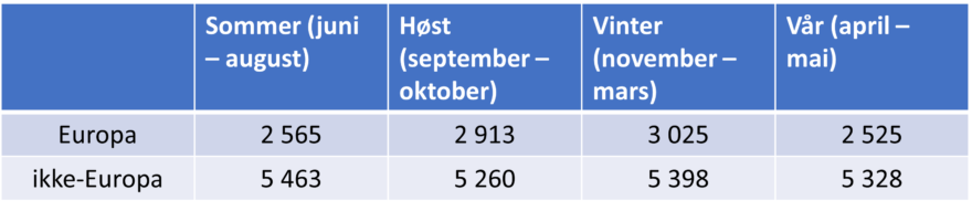 I de ikke-europeiske markedene er sommer den mest attraktive sesongen, men de andre sesongene er nesten like relevante.