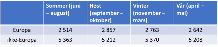 I de ikke-europeiske markedene er alle sesonger omtrent like relevante.
