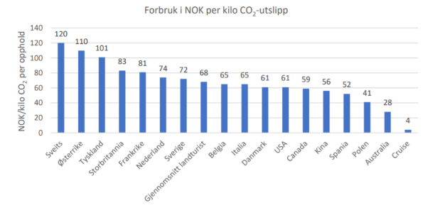 Tysktalende bruker mest penger per kilo CO2-utslipp under det samlede oppholdet i Norge, og er de ideelle besøkende. Cruiseturister, særlig de som i tillegg har flydd inn til Europa, kommer dårligst ut.