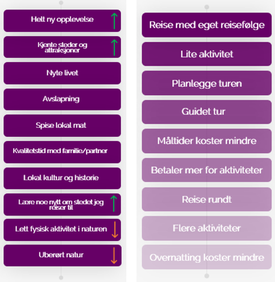 De reiser for å aktivt oppsøke kjente steder, attraksjoner og nye opplevelser. De ønsker å kombinere ulike opplevelser på én og samme tur, og også få en smakebit av en rekke ulike aktiviteter av kortere varighet.