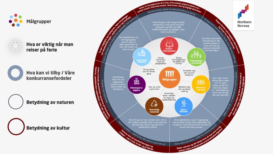 Natur er den viktigste driveren for å besøke Nord-Norge, men betydningen av denne er ulik for de forskjellige målgruppene. I tillegg vet vi at lokal kultur er svært viktig for målgruppene. Dette har vi tydeliggjort ved å legge på egne filtre i modellen.