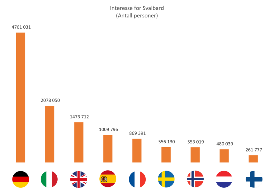 På grunn av et høyt befolkningstall er det Tyskland som har det høyeste antallet interesserte. Den aller høyeste interessen for å besøke Svalbard har nordmenn. Sverige, Tyskland og Finland følger deretter. Til tross for at interessen er lavere i de andre markedene, er det fortsatt mange mennesker som er interessert, og bør derfor ikke ekskluderes. Det kan indikere at kommunikasjonen muligens bør spisses noe mer.