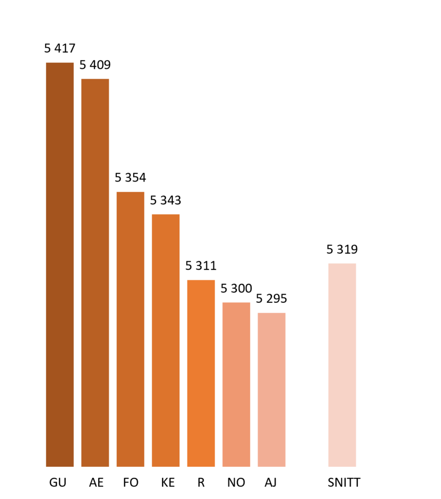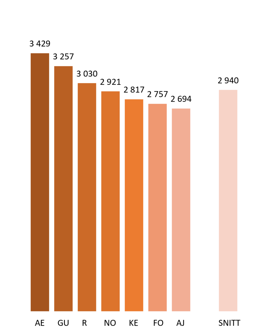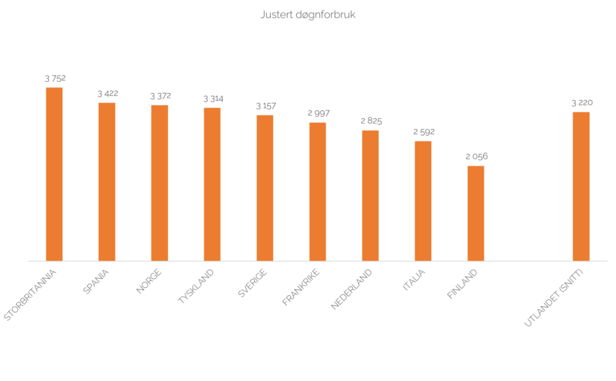 En norsk gjest bruker i gjennomsnitt kr 3 372 per døgn, mens en utenlandsk europeisk gjest bruker kr 3 220. Høyest forbruk har de britiske gjestene med kr 3 752 per døgn, og lavest de finske gjestene med kr 2 056.