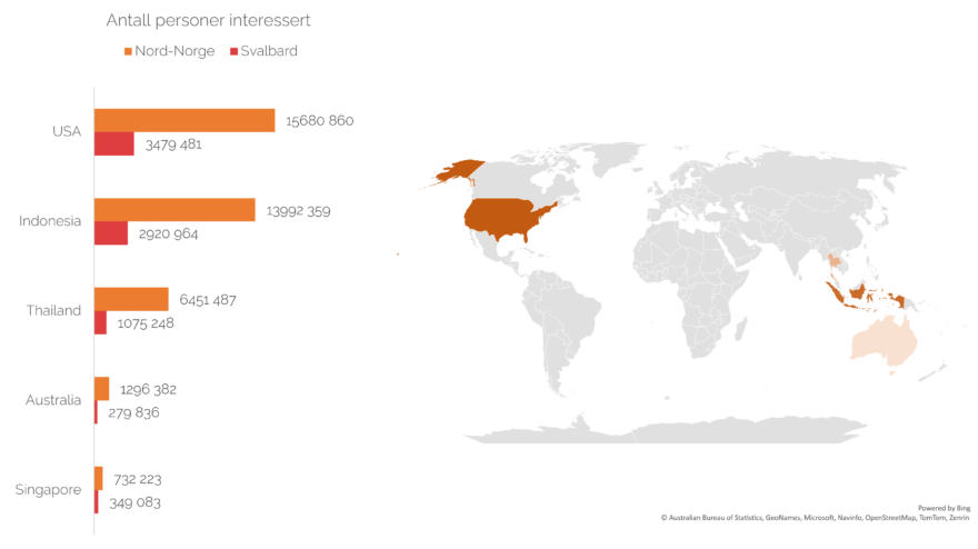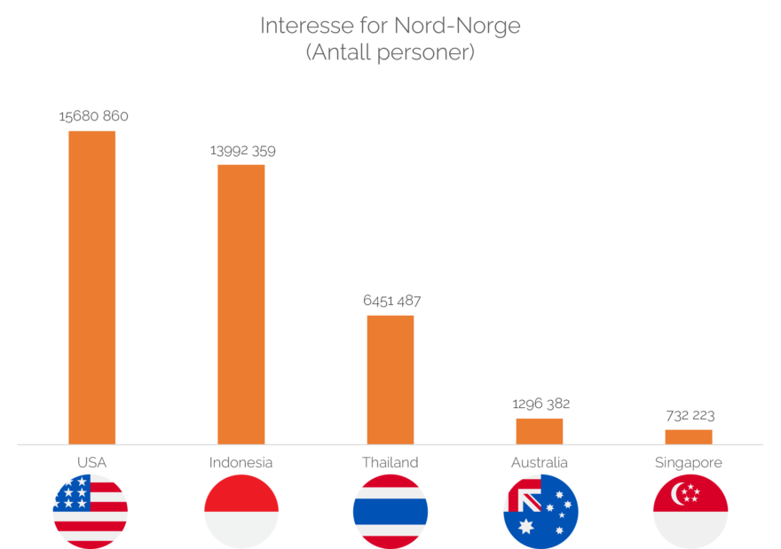 De svært høye folketallene i USA og Indonesia gjør seg gjeldende. Det er derfor svært viktig med valg av riktig målgruppe og kommunikasjon. Det er imidlertid Singapore og Thailand som har den aller høyeste interessen for Nord-Norge.