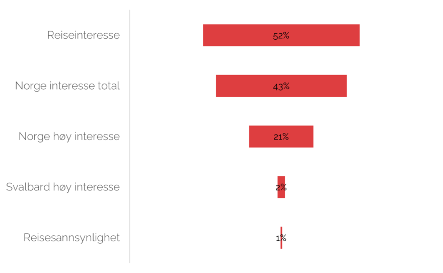 I det norske markedet alene, er det ca. 550 000 som kan tenke seg å reise til Svalbard.