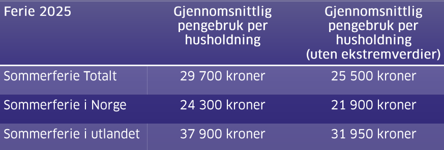 USAs uforutsigbare handelspolitikk vil føre til økte tollsatser og endringer i renter, valutakurser og råvarepriser. Dette skaper stor usikkerhet og gjør at mange er mer forsiktige med sitt forbruk. Det er en oppgang i norsk økonomi og det forventes en god reallønnsvekst også i år. Det er imidlertid også en større usikkerhet, noe som gjør at rentekuttene er skjøvet fram i tid. Mange tilpasser nå ferien med å velge billigere reisemål, billigere overnattingssteder, tilbringer ferien hjemme eller reiser mer i Norge og mindre til utlandet. Nesten 30% vil likevel prioritere ferien over andre investeringer og like mange vil bruke sparepenger på å finansiere ferien.