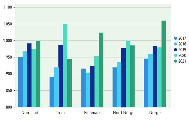 I perioden fra 2017 til 2021 har Nord-Norge hatt en økning i pris