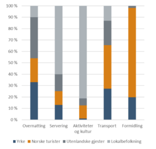 - I Nord-Norge sto lokalbefolkningen for 20% av forbruket (38% i Oslo). Internasjonale gjester sørget for 32% (kun 11% på Sørøstlandet og 27% på Vestlandet).