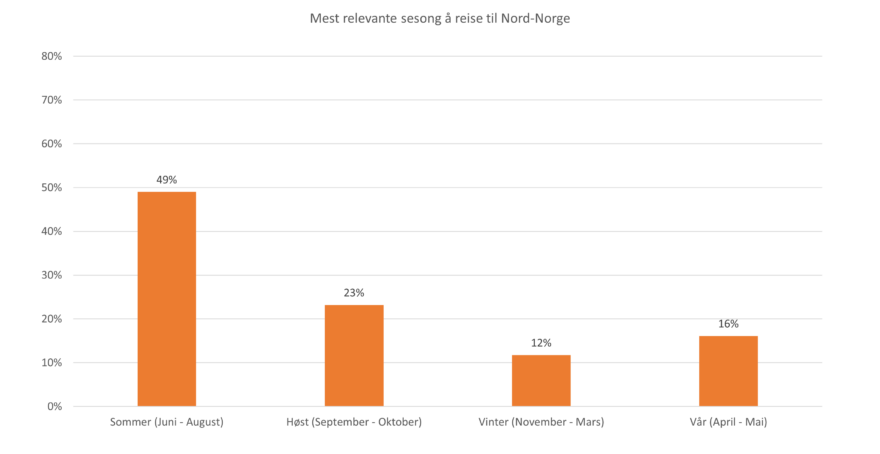 Sommeren er mest aktuell for å besøke Nord-Norge. De har gjennomsnittlig sannsynlighet for å reise i de andre sesongene.