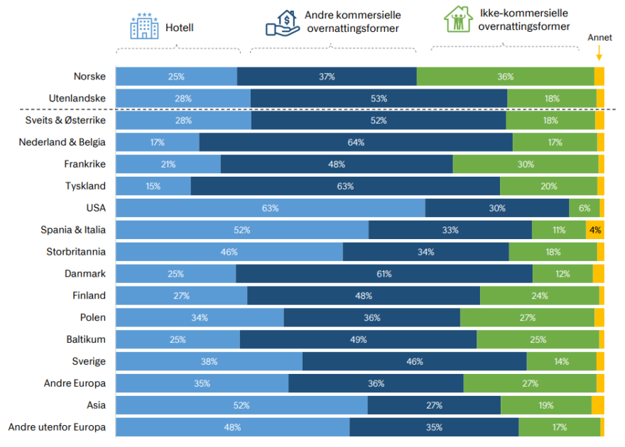 - mange norske og flere utenlandske benytter ikke-kommersiell overnatting, men det er vanlig å kombinere ulike overnattingstyper