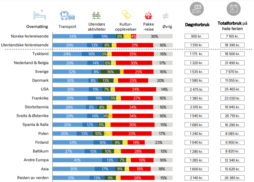 - høyere forbruk blant utenlandske enn norske gjester